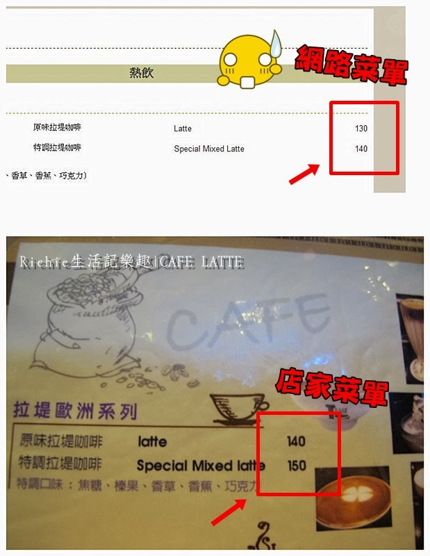 但屏屏說,原味拉提是$140,特調拉提是$150